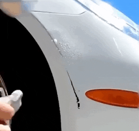 Elimina eficazmente arañazos superficiales, marcas de roces y remolinos de lavado. Si el arañazo es muy profundo (se siente con la uña o ha llegado al metal), el spray lo disimulará, pero no lo borrará por completo.
